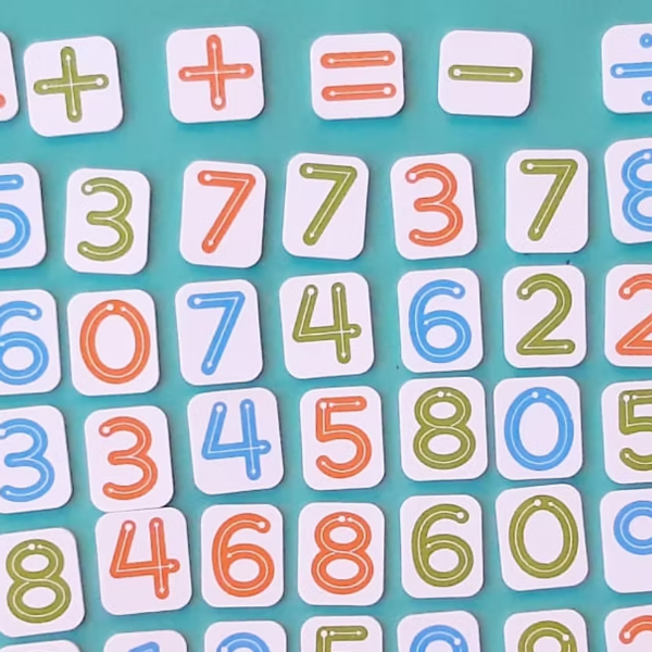 Incluye 60 números y signos + guía con flechas para aprender a escribir los números.